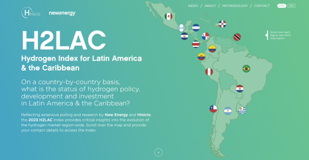 Following the delivery of three editions of the H2LAC Index during during the Hydrogen Congress for Latin America and the Caribbean (H2LAC), Hinicio and New Energy Events officially launch the H2LAC Index interactive platform.